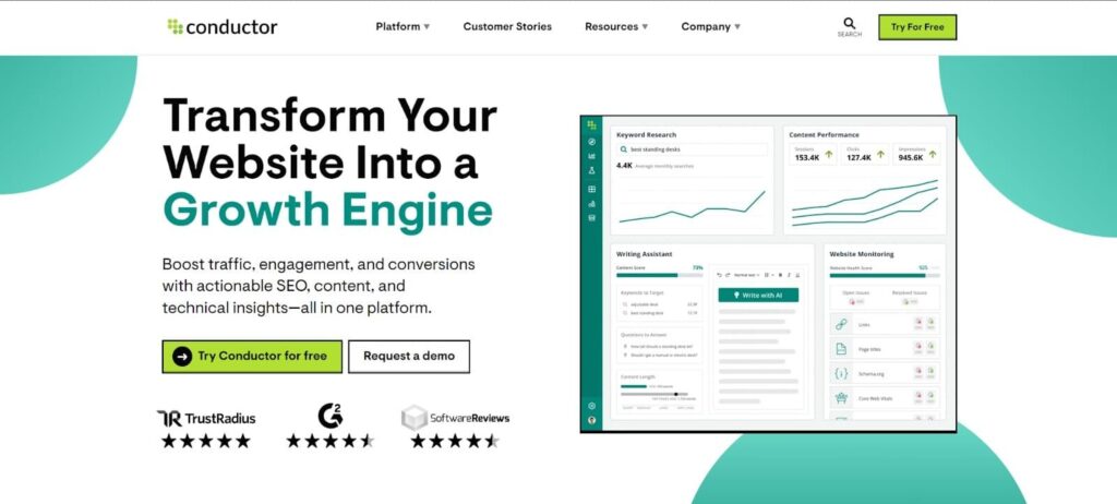 Conductor is widely recognized as a top-tier digital marketing and SEO company, particularly praised for its comprehensive platform, Conductor Searchlight, which offers advanced SEO and content marketing solutions. This platform facilitates in-depth market analysis, competitor research, and performance tracking, empowering businesses to enhance their online visibility and effectively engage their target audience. With a strong emphasis on customer-centric solutions and continuous innovation, Conductor provides tools that are integral for developing strategic marketing initiatives. The company’s dedication to integrating technology with customer service ensures that clients receive both cutting-edge solutions and substantial support, making it an ideal partner for businesses aiming to thrive in the digital landscape.